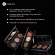 • Each of the 3 powders in the SUGAR Contour De Force Face Palette has excellent shading, blends effortlessly without loss of pay-off, and lasts for hours without flaking or caking.
