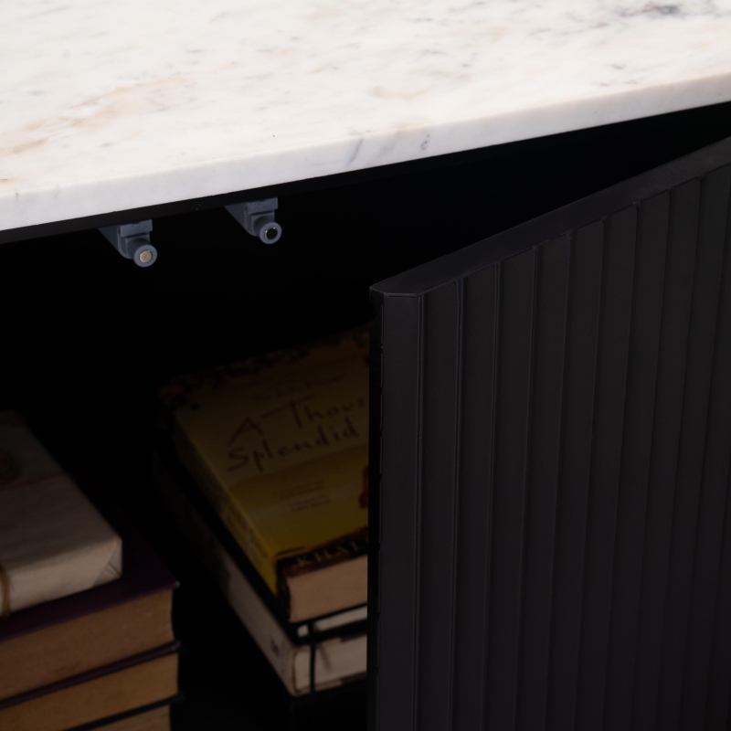 وحدة تلفزيون علوية من رخام دوريان مع قاعدة معدنية مخددة